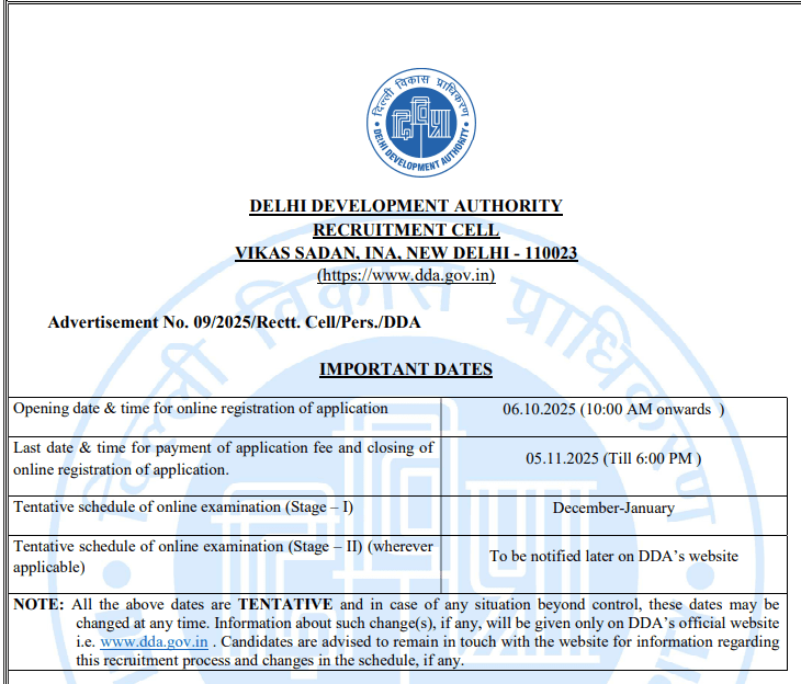 • Stage-II Exam (where applicable): To be announced later on DDA’s website