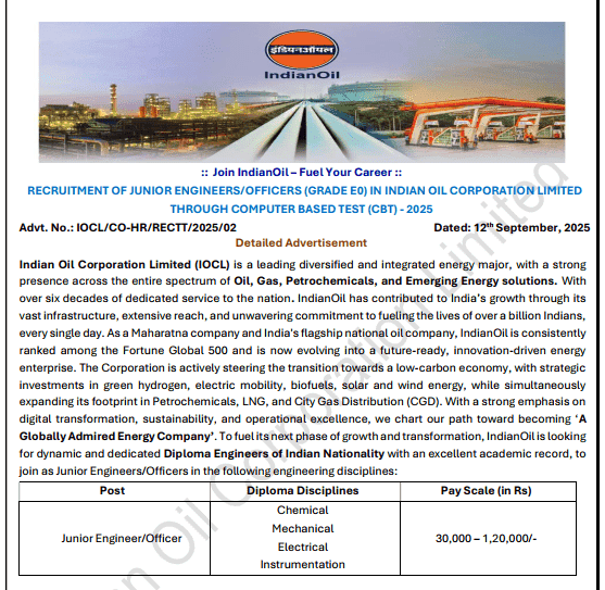 Qualifications for the 2025 IOCL Junior Engineer Recruitment