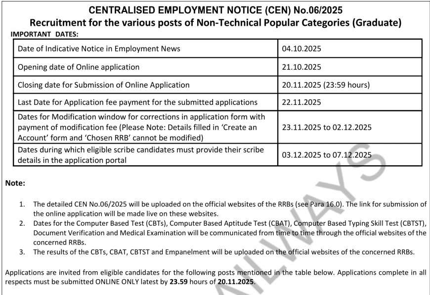 Post Name:- RRB NTPC Graduate Level Recruitment 2025